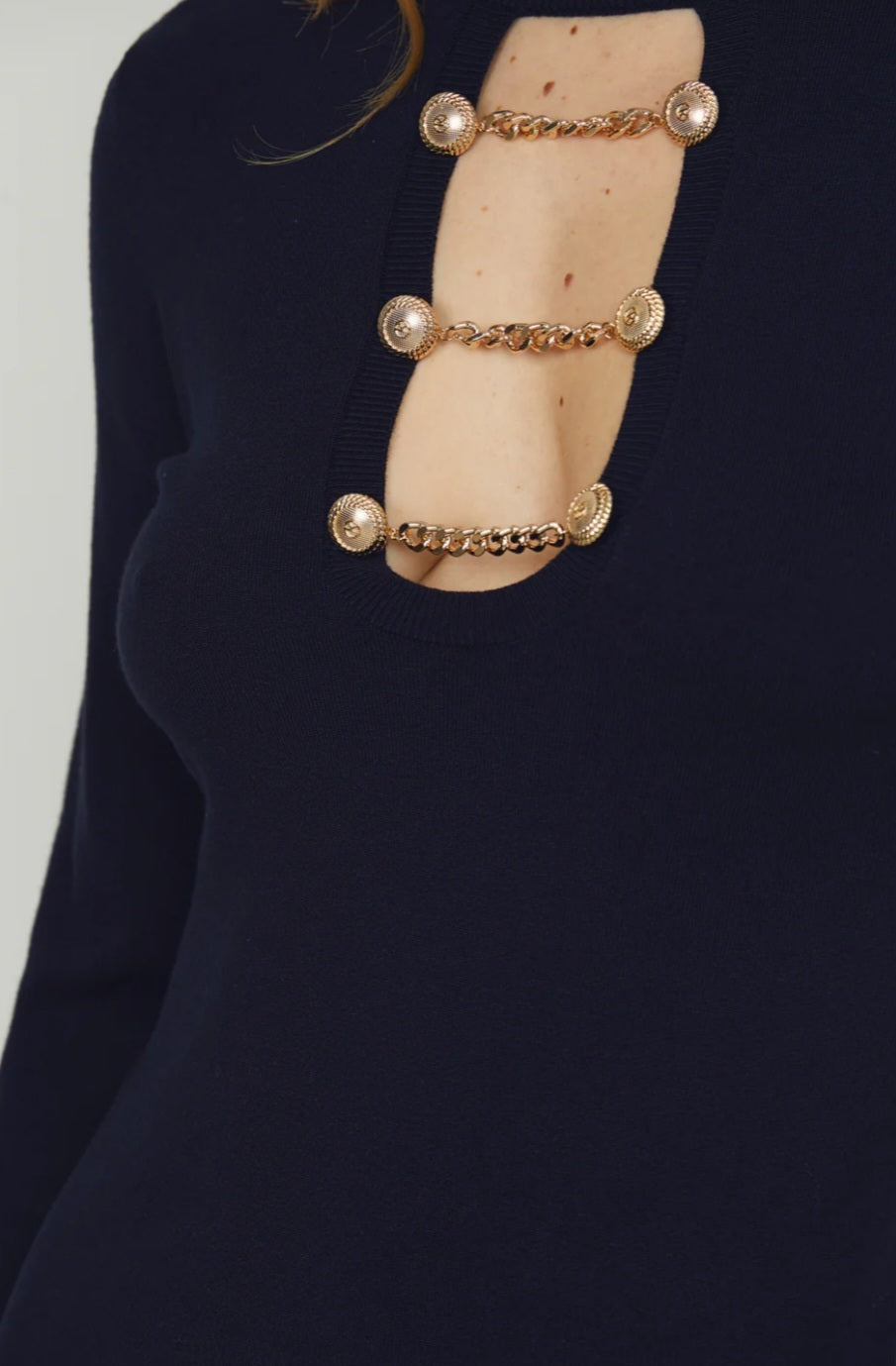 L’abito BRANCO è pensato per chi ama farsi notare con stile. Il taglio corto e il mezzocollo creano un look deciso e contemporaneo, mentre l’apertura frontale è impreziosita da catene decorative e bottoni gioiello che donano un twist brillante e sofisticato. Ideale per serate, eventi o occasioni speciali, è il mix perfetto tra audacia e raffinatezza. Un capo d’impatto che esalta la silhouette e racconta personalità.