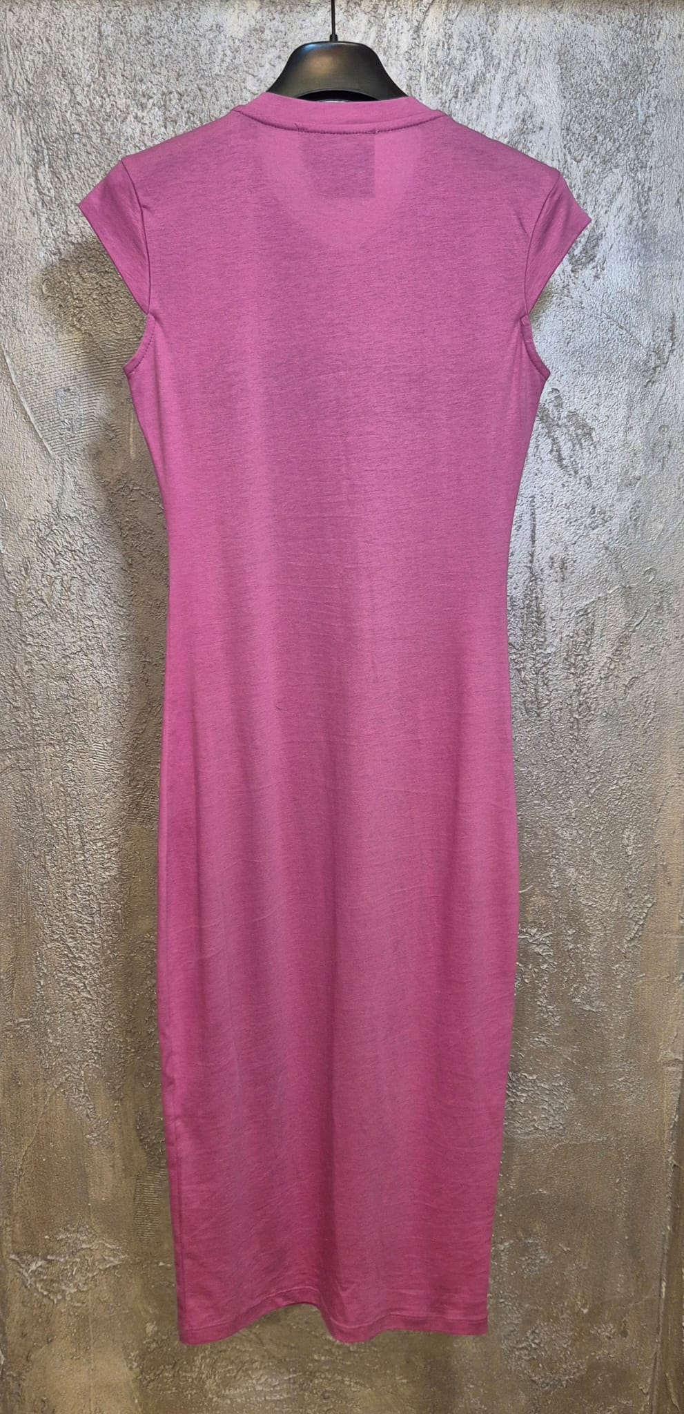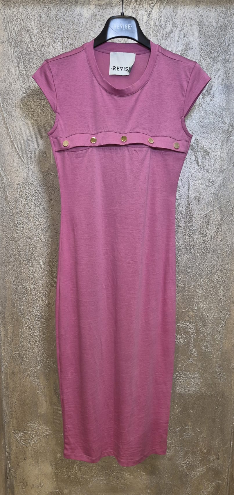Abito longuette in cotone stretto con mezza manica e bottoni dorati sul davanti