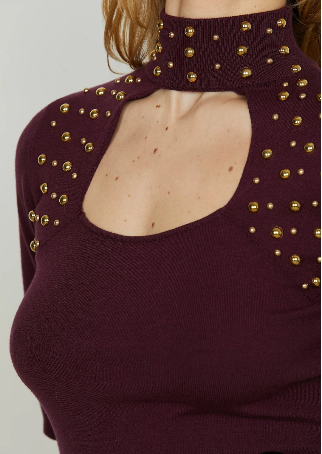 L’abito SIGUANG unisce linee sensuali e dettagli di carattere. Il collo alto contrasta con l’apertura frontale a forma di cuore, creando un effetto elegante ma audace. Le borchie applicate aggiungono un tocco grintoso e moderno, perfetto per chi ama distinguersi con stile. Il taglio corto valorizza la silhouette, rendendolo ideale per party, eventi o serate speciali.