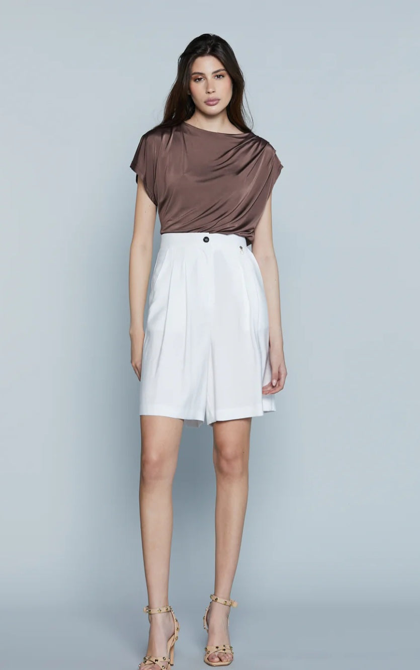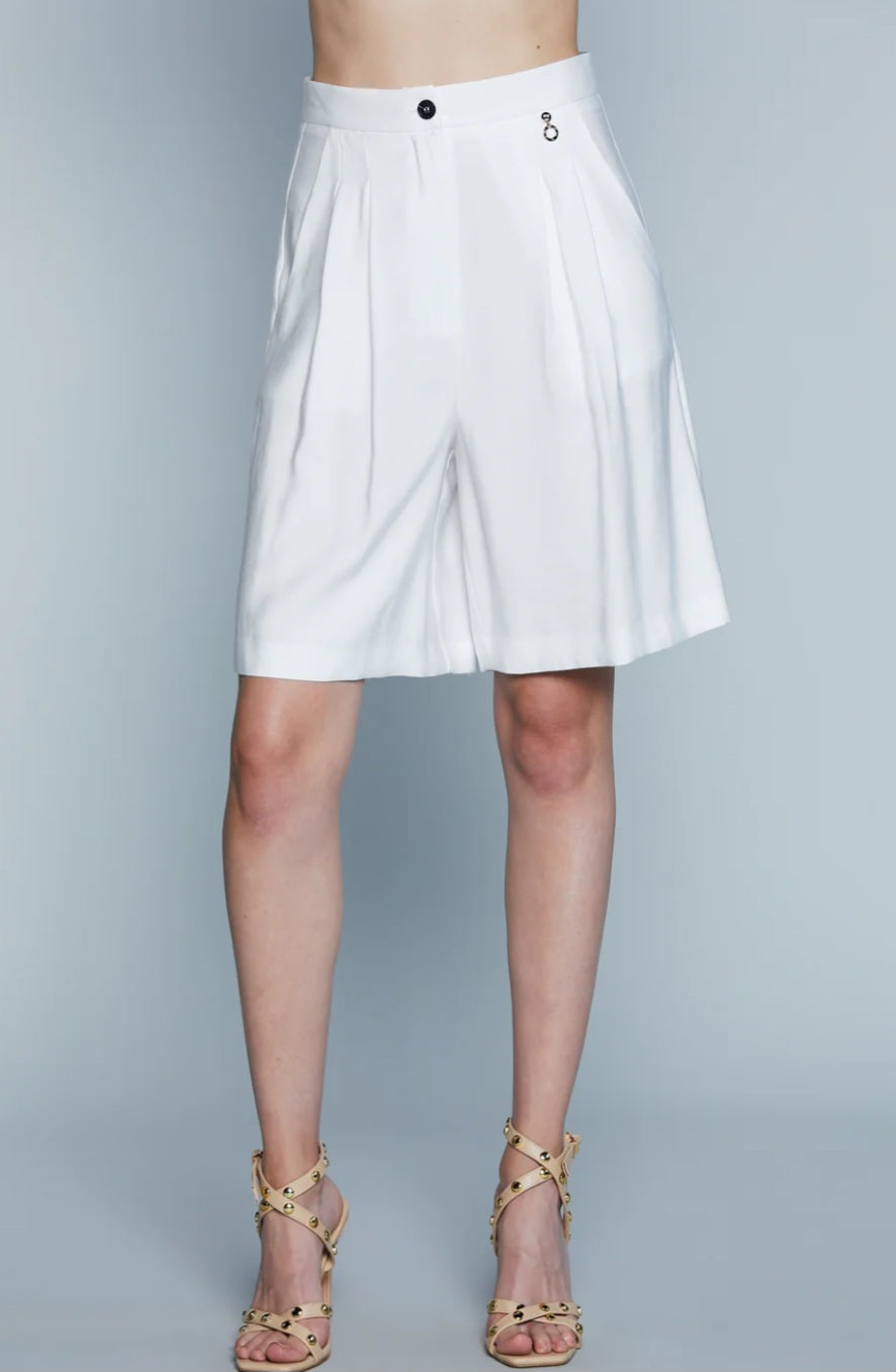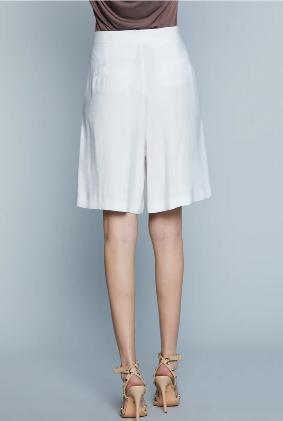 Elegante e versatile, il Bermuda Melita_G è caratterizzato da una vita alta che slancia la figura e da pinces frontali che conferiscono un tocco di eleganza strutturata. Perfetto per l'estate, questo bermuda si adatta facilmente a outfit casual-eleganti, garantendo stile e comfort in ogni occasione. ideale per completare un look raffinato e moderno è l'abbinamento con la sua giacca coordinata, che crea un completo sofisticato e armonioso.