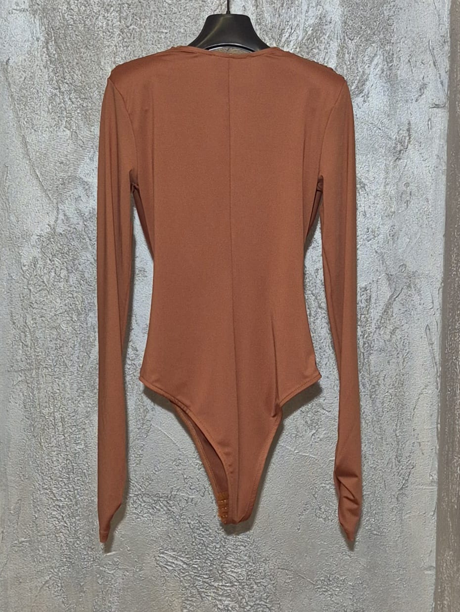 Body in tessuto lucido con spallibe(removibili) e scollo sciallato