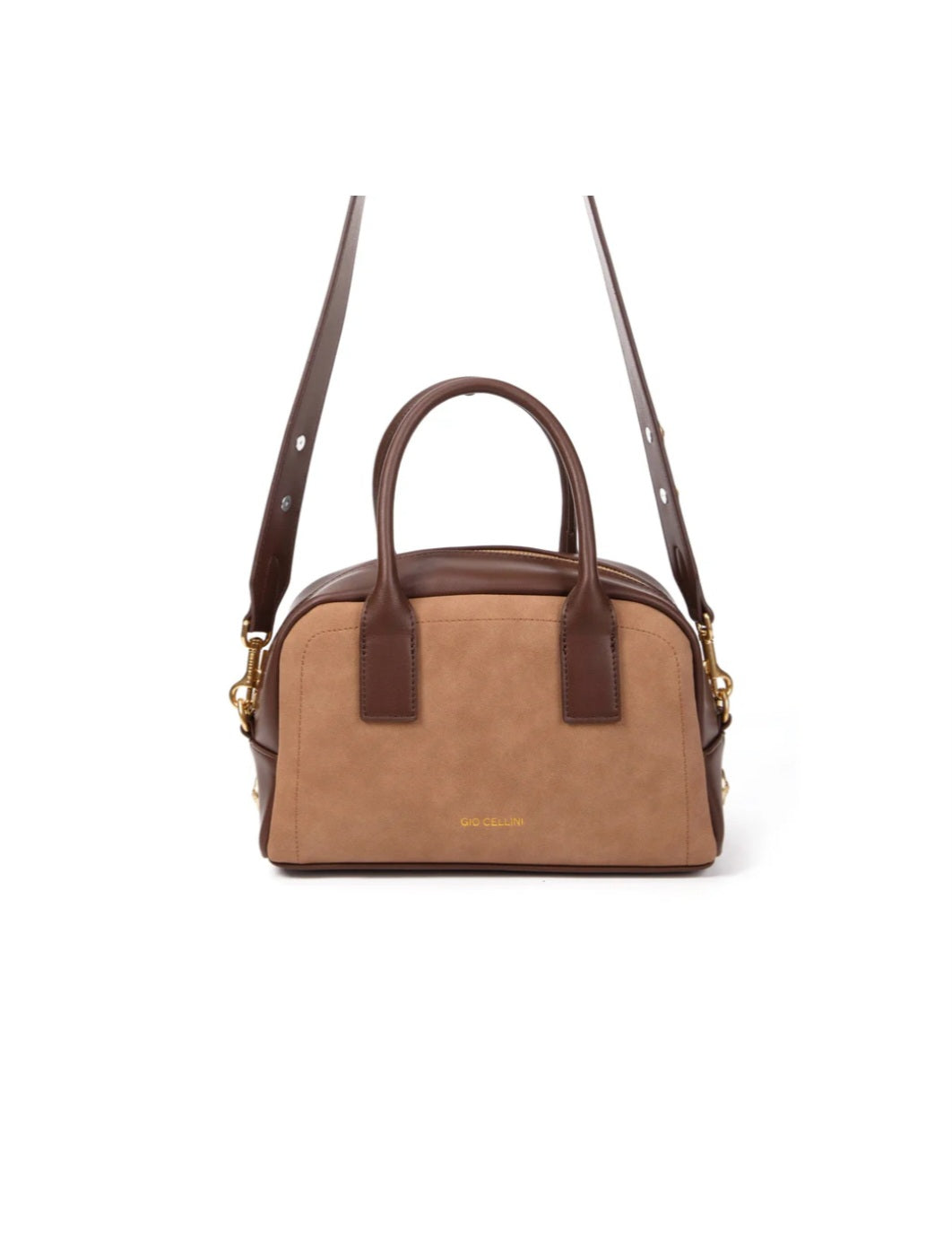 Borsa a mano in ecopelle martellata con logo embossed finitura argentata