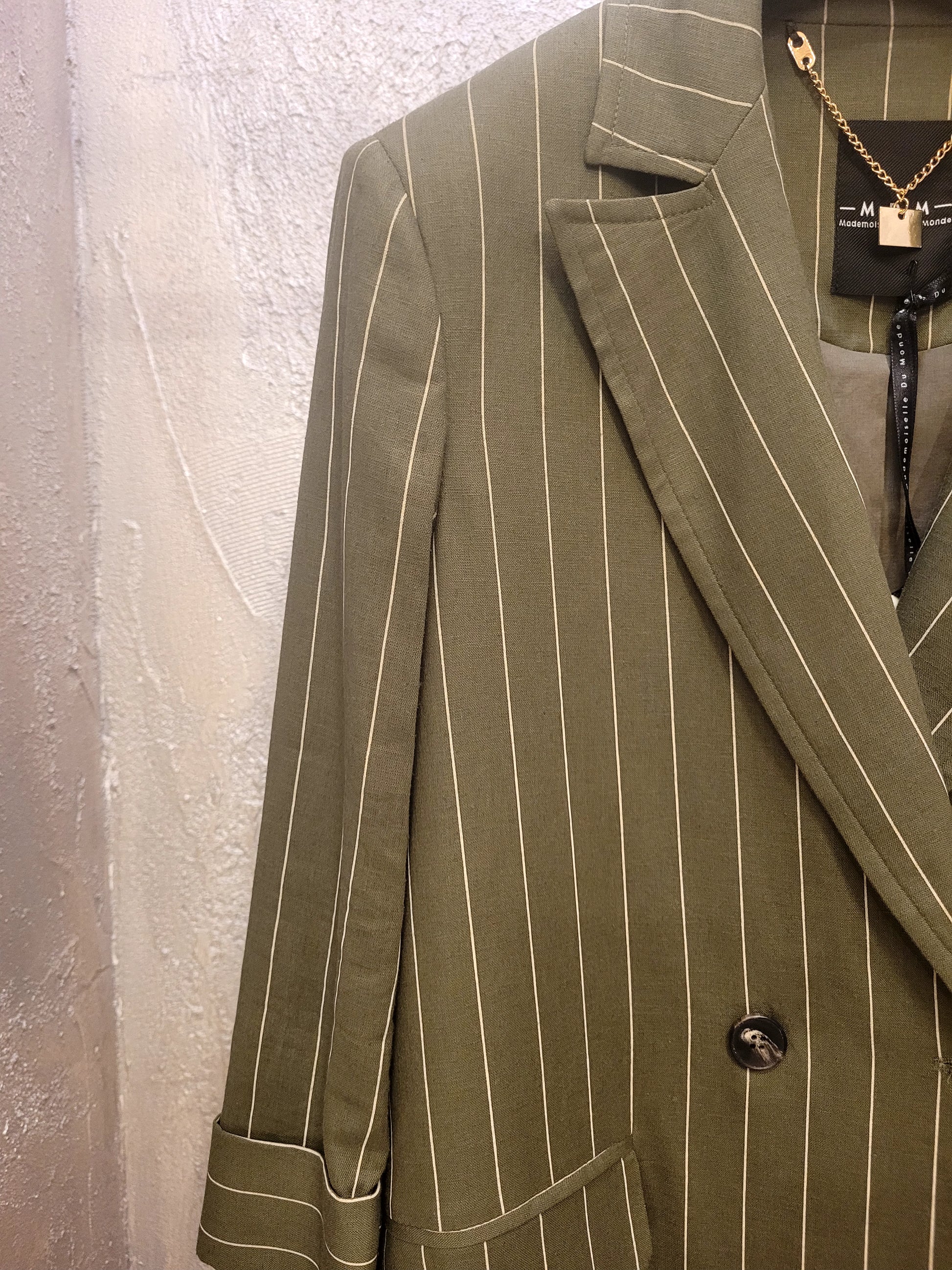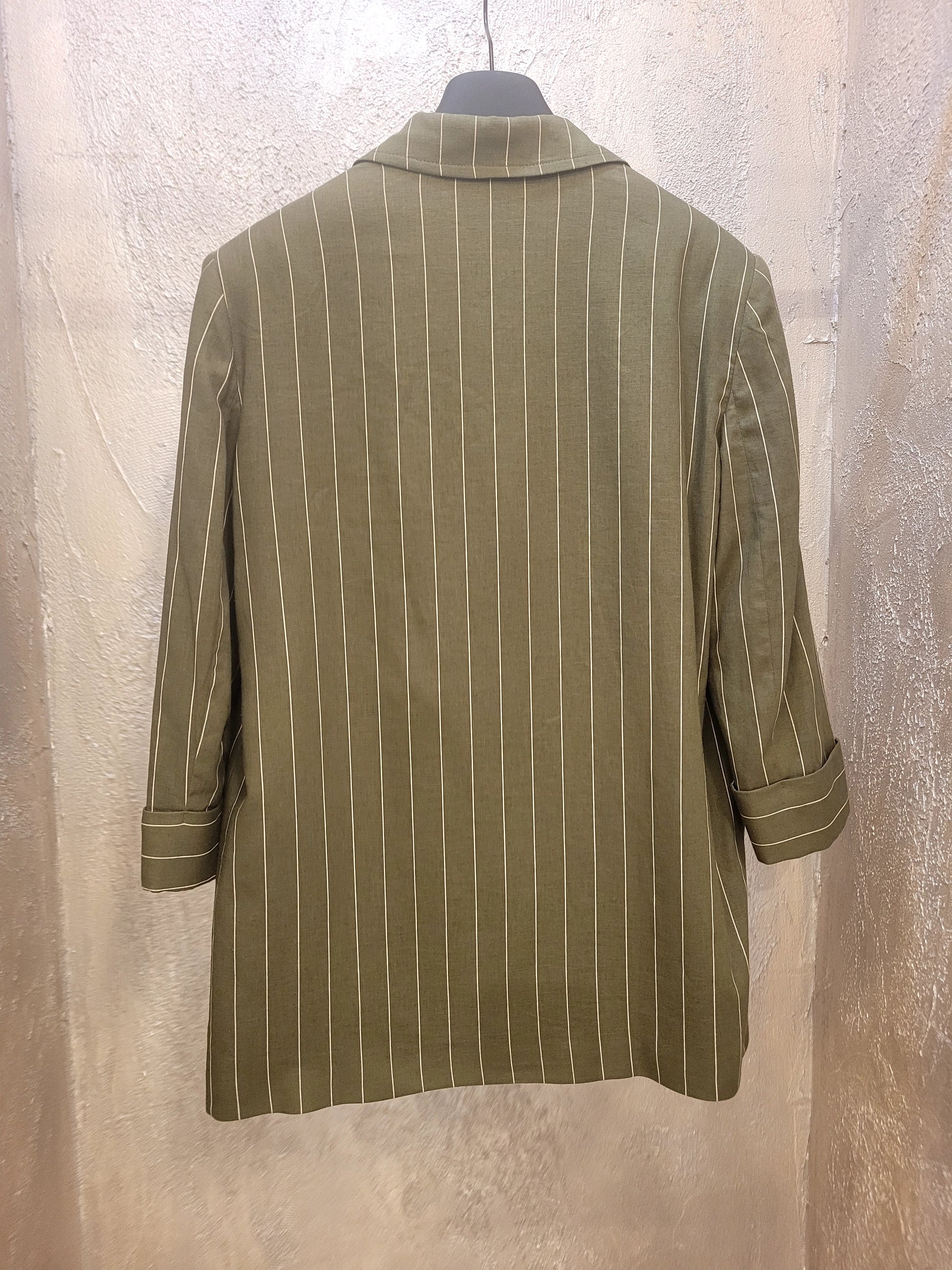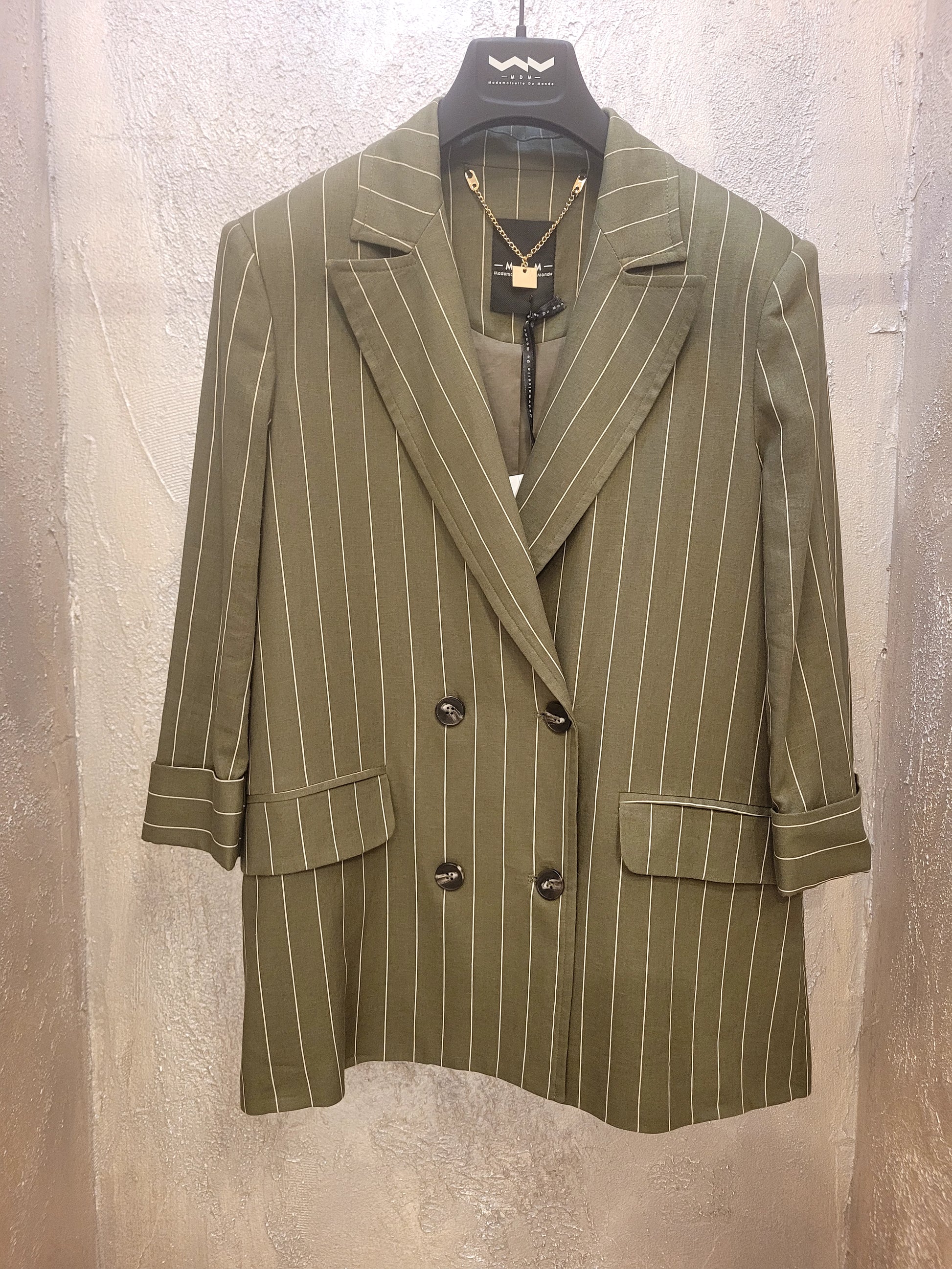Giacca over con spalline e maniche a tre quarti. Giacca dal taglio comodo doppio petto in tessuto naturale ideale per essere elegante anche con le alte temperature.