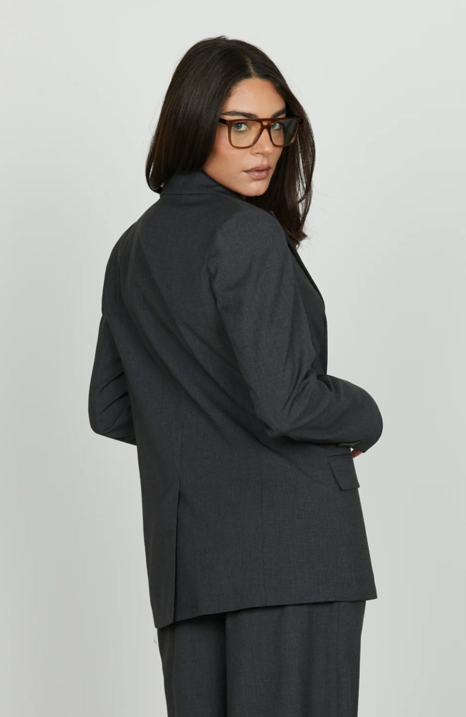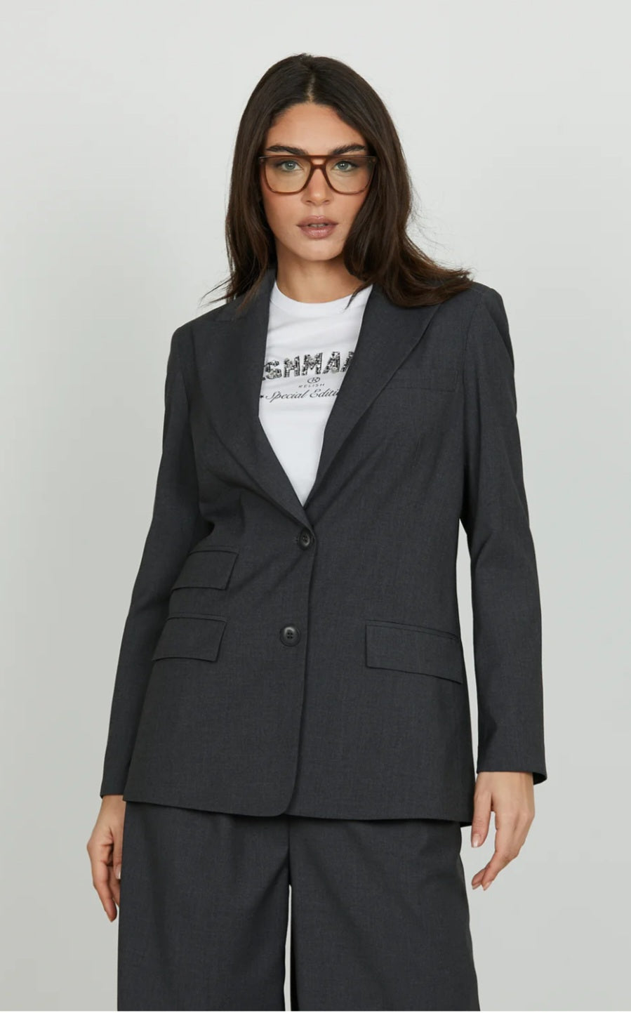La giacca Levisa conquista con la sua linea lunga e pulita, valorizzata da una chiusura a due bottoni e doppio taschino con patte che aggiunge un tocco strutturato. Un capo dal gusto classico ma attuale, perfetto per completare look formali o per dare grinta all’outfit quotidiano.