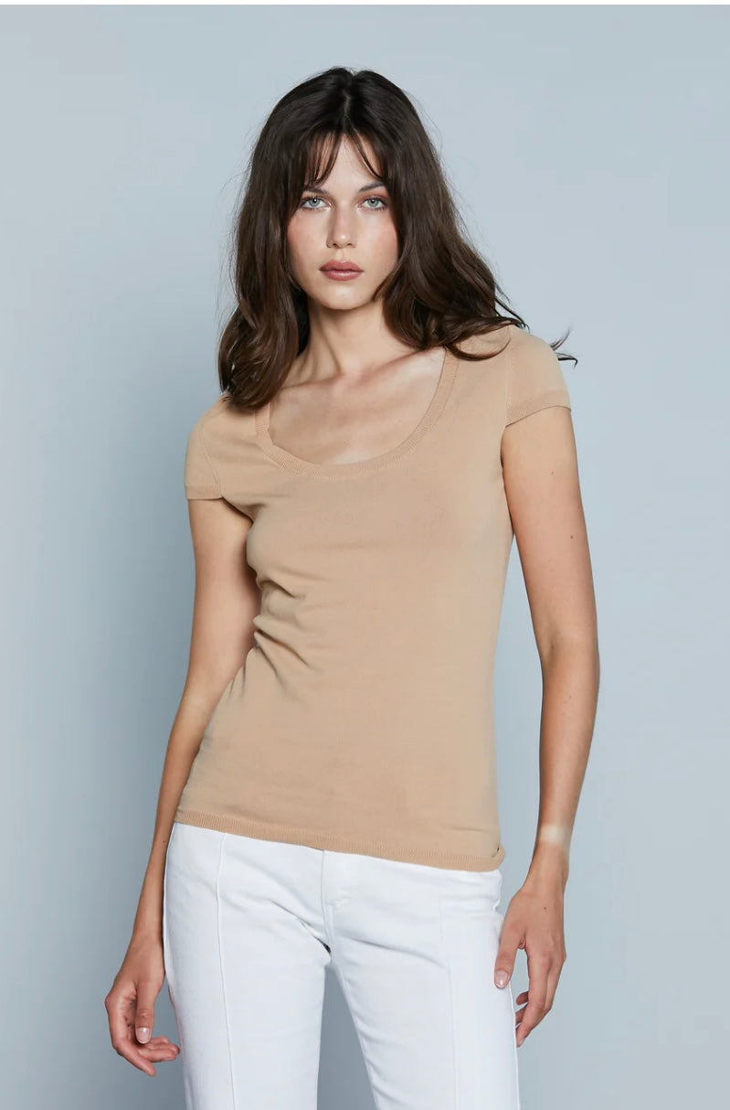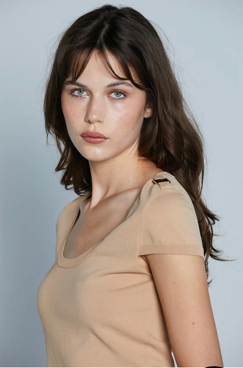 La "Maglia Eric" è una t-shirt a maniche corte caratterizzata da uno scollo a barchetta, noto anche come "scollo alla Madonna". Questo tipo di scollo è ampio mete in risalto la scollatura. Sulle spalle sono presenti passanti con il logo del brand, aggiungendo un elemento distintivo al design. Realizzata in tessuto morbido e confortevole, questa maglia è ideale per un look casual ma ricercato.