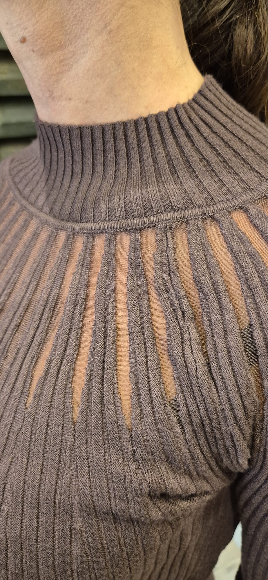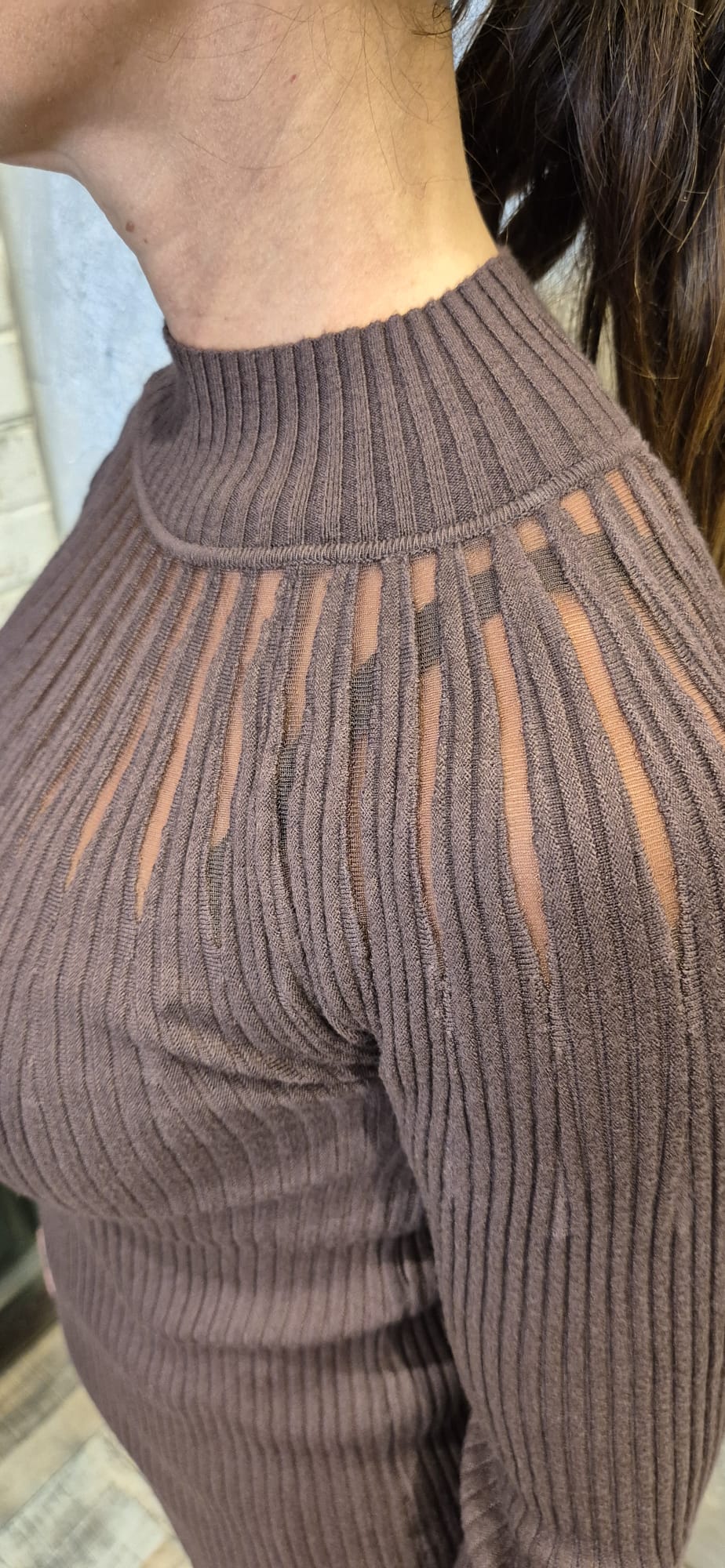Maglia mezzo collo Zahjr a costine con trasparenze sul davanti sulle spalle e dietro