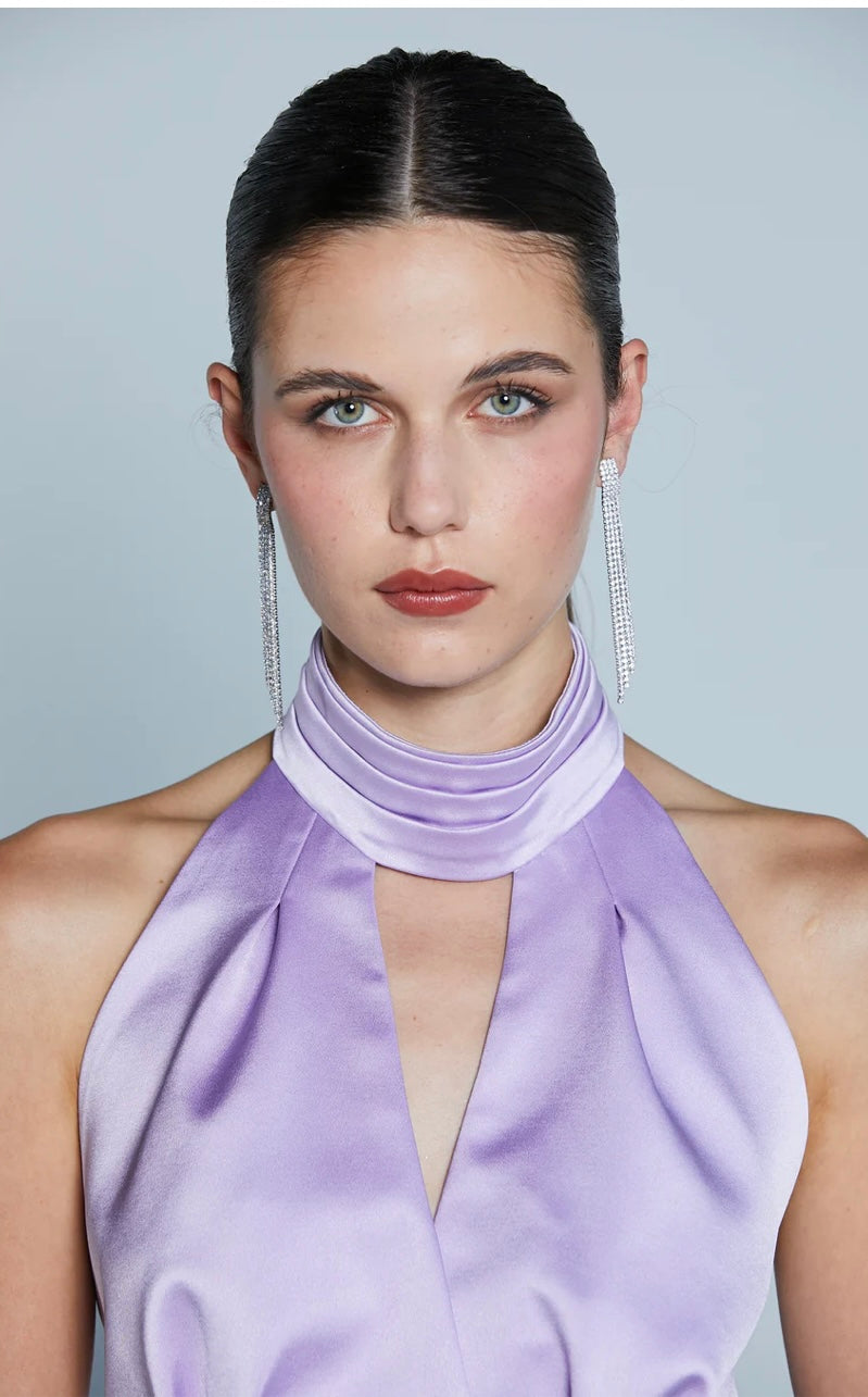 Il Top Beatilo è realizzato in morbido raso, perfetto per aggiungere un tocco di eleganza a qualsiasi look. Caratterizzato da un raffinato scollo a V incrociato sul davanti, presenta delicate pieghe che valorizzano il collo e aggiungono un tocco di sofisticatezza. La schiena scoperta è impreziosita da un fiocco, che dona un effetto sensuale e chic. Questo top è ideale per chi cerca uno stile glamour e femminile, perfetto da abbinare a gonne eleganti o pantaloni a vita alta per una serata speciale.