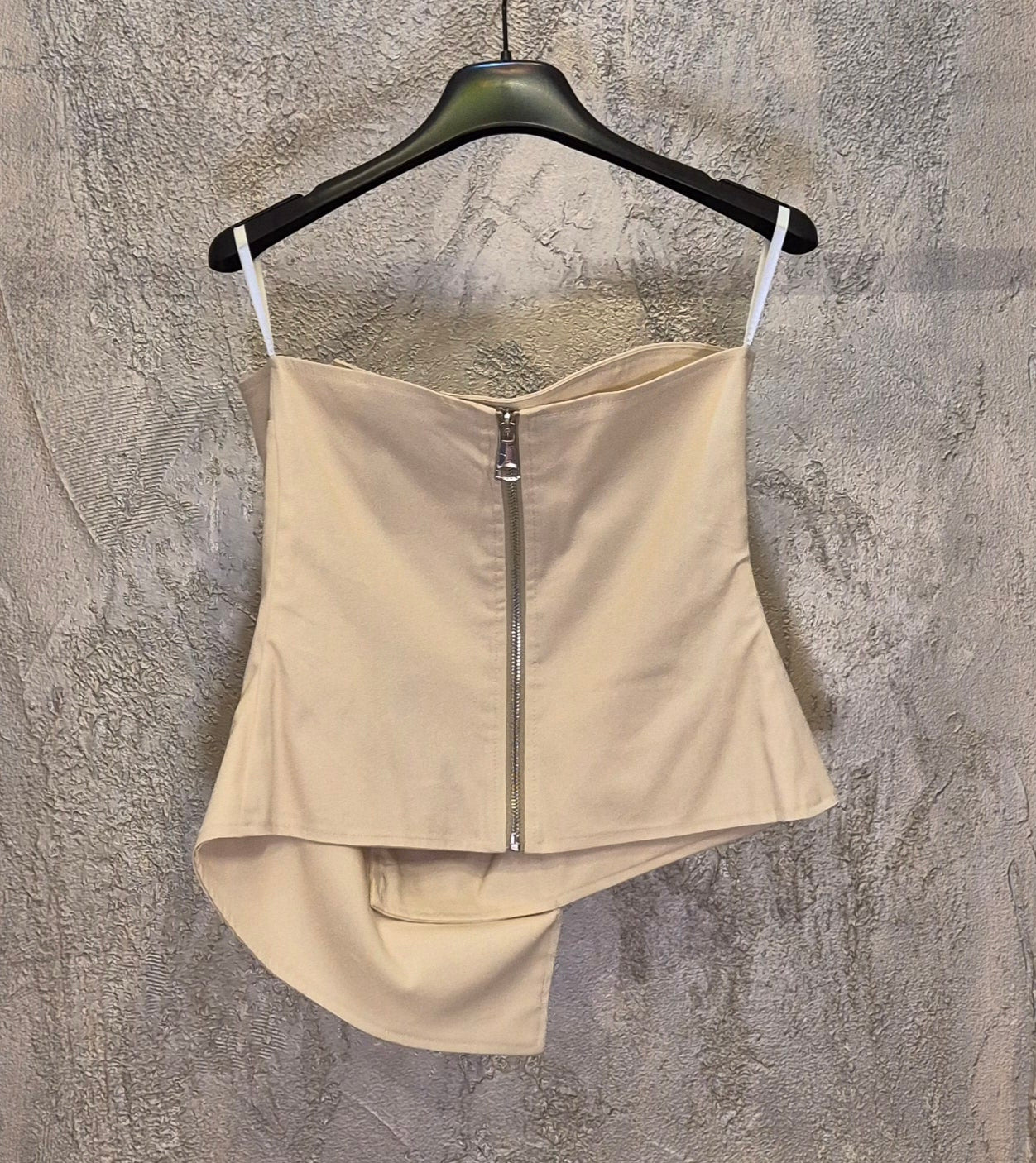 Top/ corpetto asimmetrico con zip sul retro senza bretelle