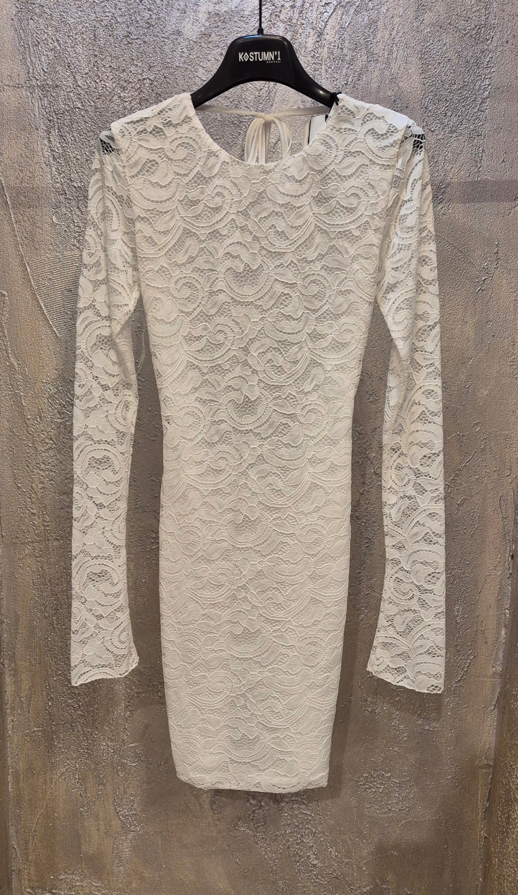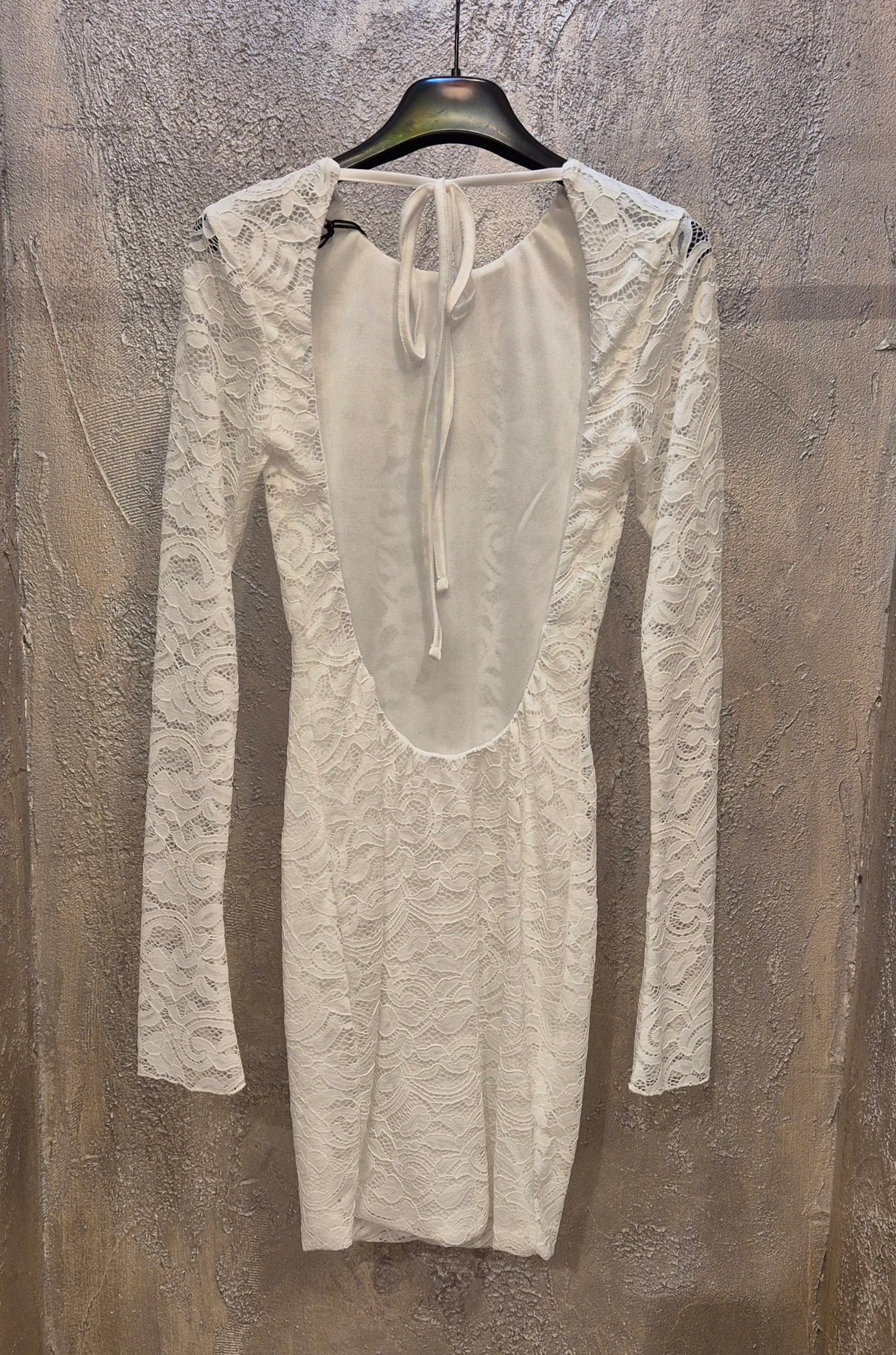 Abitino in pizzo manica lunga con ampia scollatura sulla schiena completamente foderato, l'abitino è elasticizzato e rimane aderente.