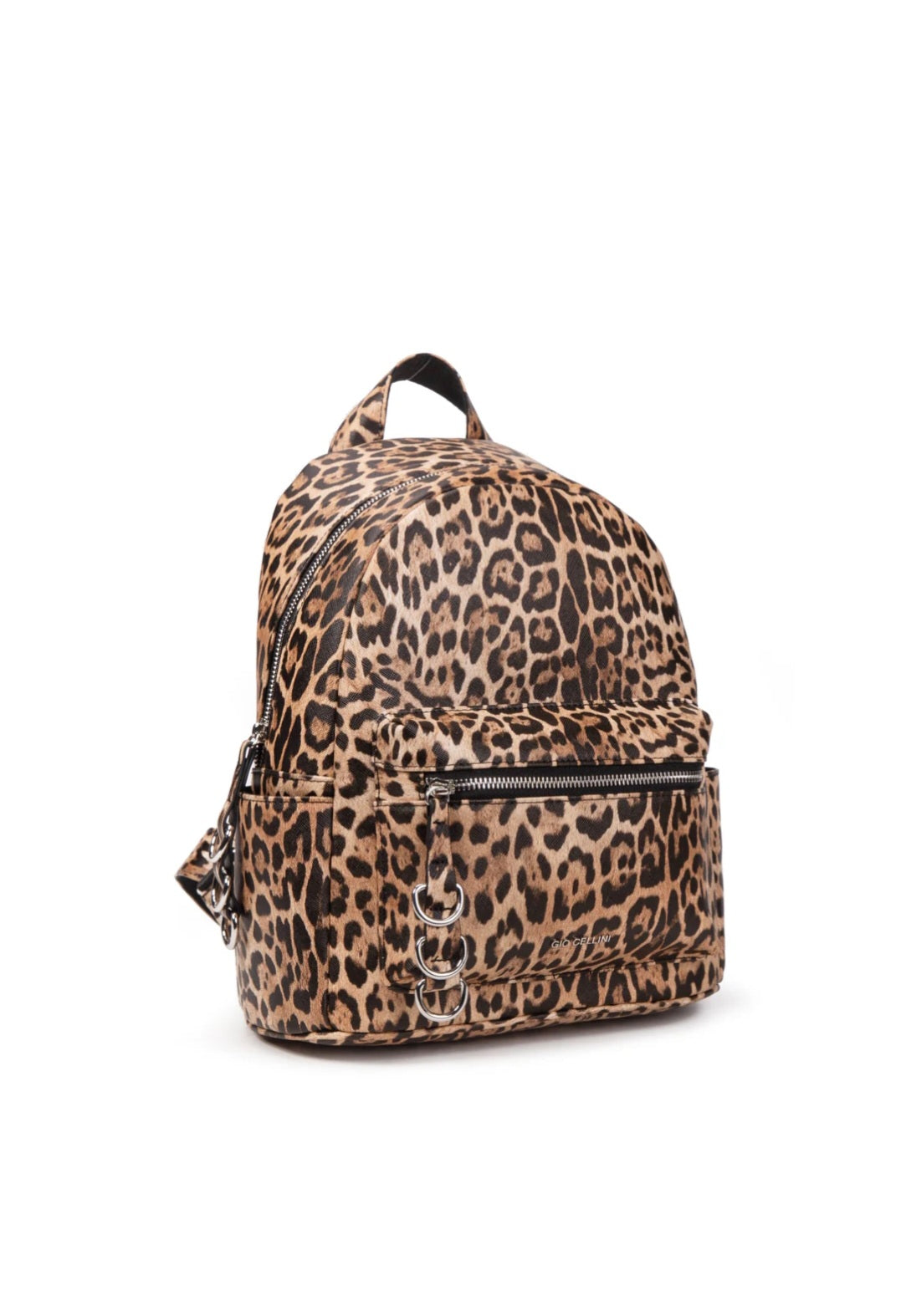 Zaino in ecopelle liscia con logo lettering finitura argentata
